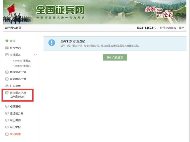 2、点击下图红色框中“进行兵役登记”;