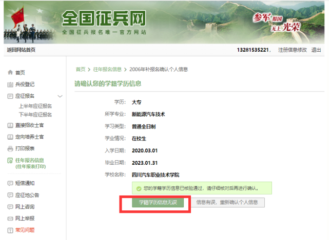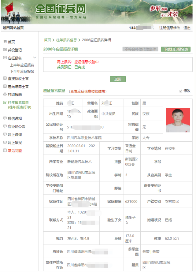 8、完成补报名信息填写,查看应征信息;