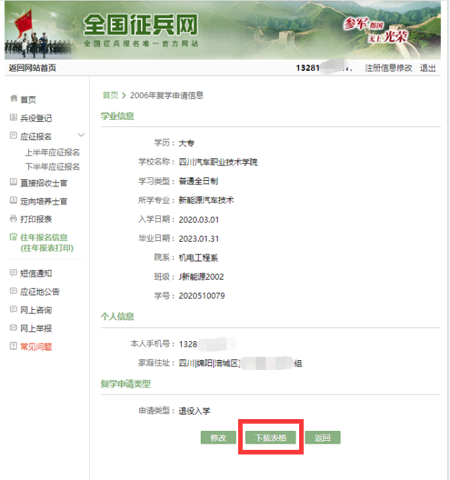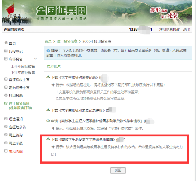 根据教育厅等相关部门规定,服兵役学员必须在“全国征兵网”上登记报名,在线填写并打印《应征入伍服兵役高等学校学生国家教育资助申请表Ⅱ》,后简称“《申请表Ⅱ》”。