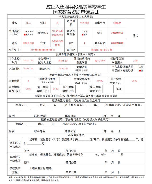 点击下载:附件4-2:应征入伍服兵役高等学校学生国家教育资助申请表