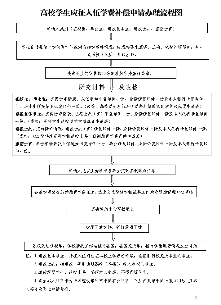 一、应征入伍学费补偿申请办理流程图