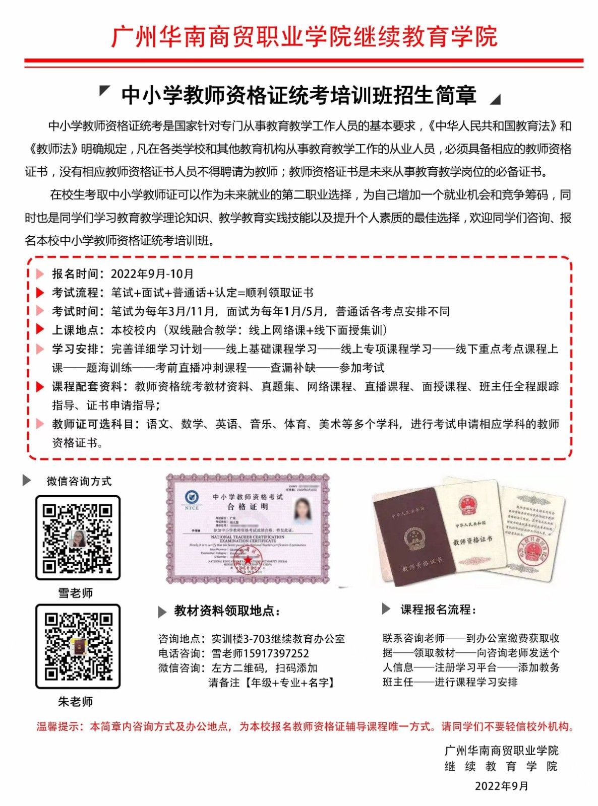 2022年华贸教师资格证培训班招生简章
