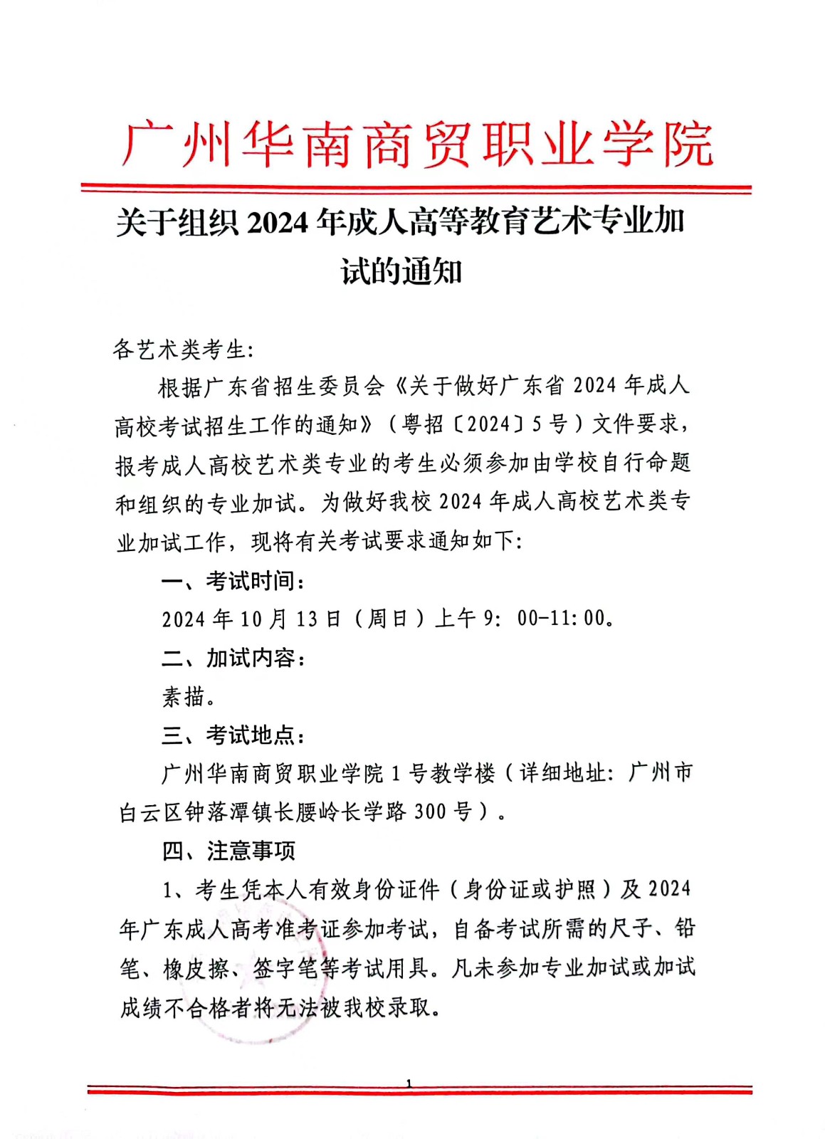 关于组织 2024年成人高等教育艺术专业加试的通知