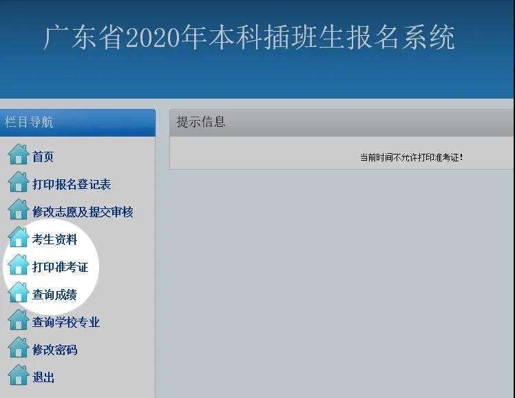 2020年6月6日起,考生可登录广东省本科插班生报名系统自行打印考生准考证,下面是打印准考证链接: