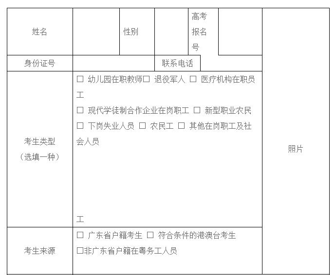 广东省2019年第二期高职扩招考生资格审核登记表